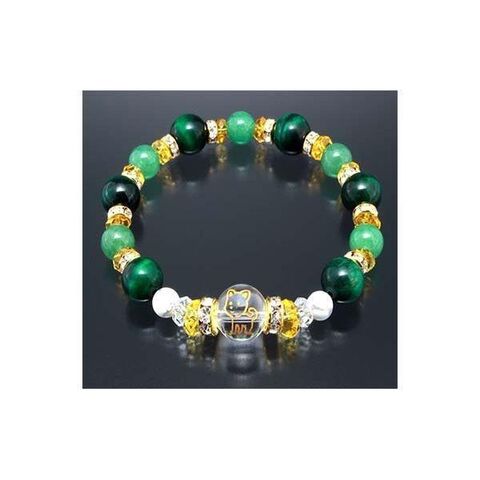 原材料:材質 白水晶:12mm珠(戌刻印)×1個6x3mm(カット)×2個黄水晶:8x4mm(カット)×2個6x3mm(カット)×10個グリーンタイガーアイ:10mm珠×6個アベンチュリン:8mm珠×5個ホワイトハウライト:6mm珠×2個ロンデル:8x4mm×2個・6x3mm×10個(真鍮・ラインストーン)