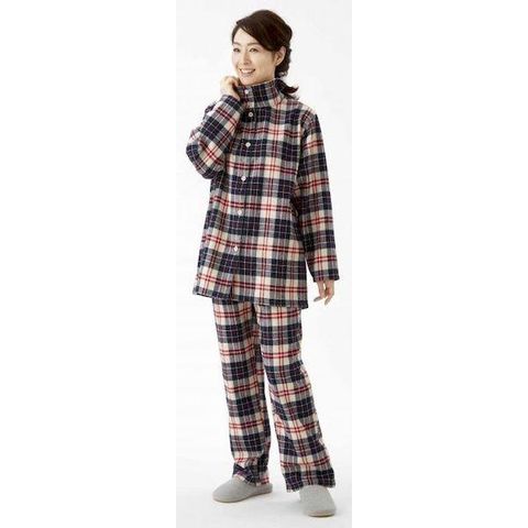 4985697236450 暖かボア付綿100%パジャマ ネイビー系 LL【キャンセル不可】