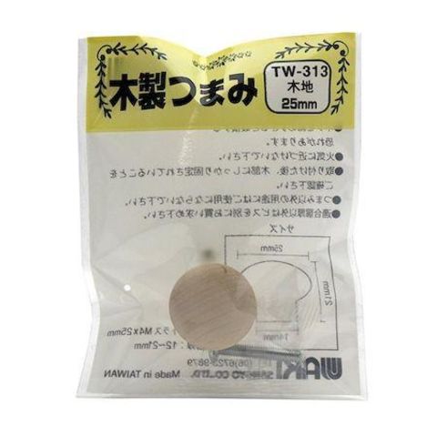 和気産業 4903757163133 TW-313 木製つまみ 木地 横幅25mmX設置面14mmX高さ21mm WAKI 生地