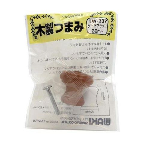 和気産業 4903757163379 TW-337 木製ツマミ ダークブラウン 横幅30mmX設置面22mmX高さ28mm