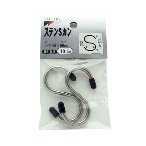 和気産業 4903757221871 SS102 ステンレス Sカン フック内径20mm フック全長60mm 2入