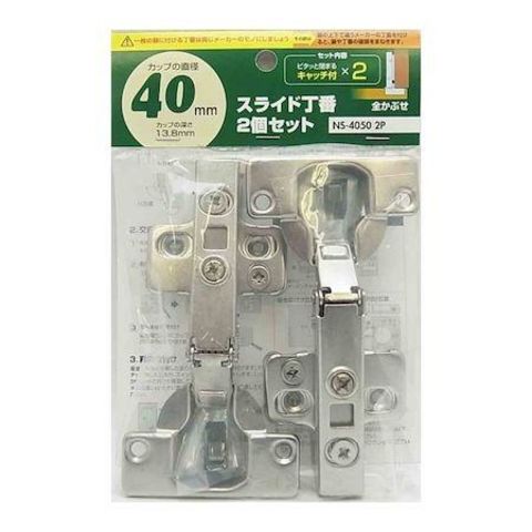 和気産業 4903757285668 NS4050-2P スライド丁番 キャッチ付き 全かぶせ カップの径40mm 2入