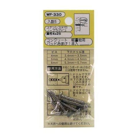 和気産業 4903757288997 WF-330 コンクリート 軽量用 ステンレス ノープラグビス 座付4X25mm 5入