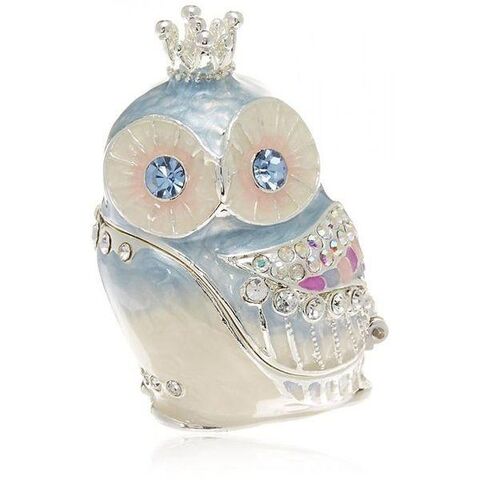 かわいいフクロウの王子様のキラキラなジュエリーボックスです。ブルーの澄んだ瞳と七色に輝くチェコクリスタルガラスを翼にちりばめたフクロウの王子様。開閉口にはマグネットが取り付けてあり、アクセサリーなどの収納にお勧めです。