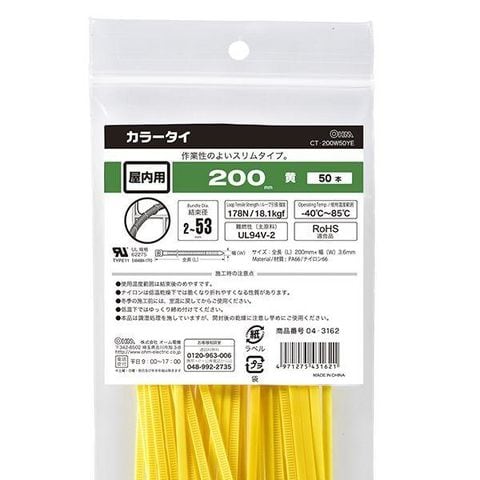 オーム電機 CT-200W-50YE カラータイ(屋内用/200mm/黄/50本入り) CT-200W-50YE CT200W50YE