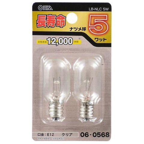 オーム電機 LB-NLC5W 長寿命ナツメ球(5W/白熱電球/クリア/E12/2個入り) LB-NLC5W LBNLC5W 5ワット