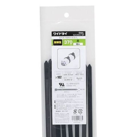 オーム電機 WLT-370-K 10P 耐候性ワイドタイ(370mm/黒/10本入り) WLT-370-K 10P WLT370K10P