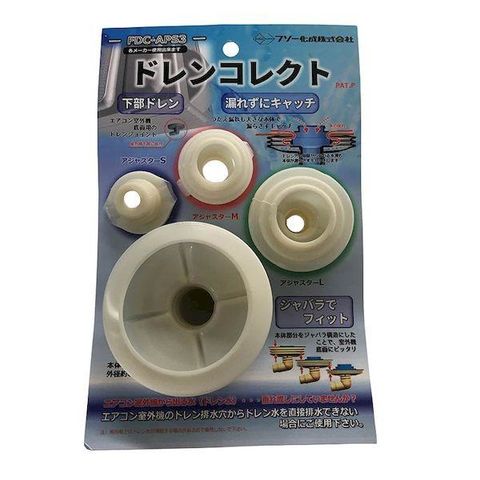※エアコン室外機のメーカー及びドレン径をご確認のうえ、アジャスターを本体に取り付けて下さい。