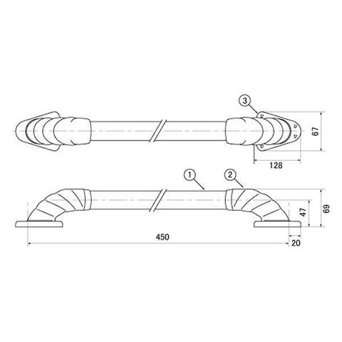 ●商品サイズ(ミリ) 手すり径φ32x長さ450。