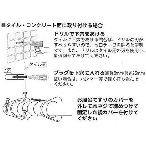 ●コンクリートプラグを使用する場合、ドリルで【直径6mm/深さ25mm】の下穴をあけてください。