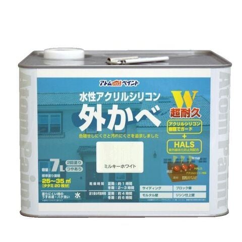 アトムハウスペイント 4971544158471 水性アクリルシリコン外かべ用 7L ミルキーホワイト
