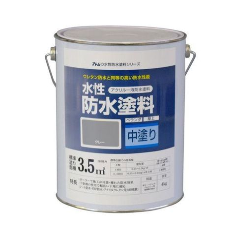 アトムハウスペイント 4971544230108 水性防水塗料専用中塗り 4kg グレー アトムペイント 00001-23010