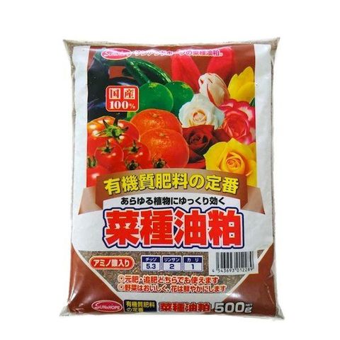 有機質肥料の定番です。緩効性の肥料で肥効が終わった後も腐植が土に残り、ふかふかの土にします。アミノ酸が野菜はおいしく、花は色鮮やかにします。