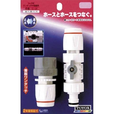 トヨックス TOYOX C-22 コック付ワンタッチ中間継手 C22 4975196402715 散水パーツ ホースの付替え簡単に