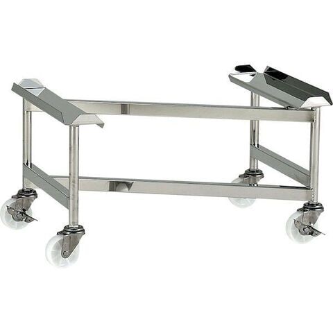 ●材質:荷台/SUS304-2.0t折材、脚部/SUS304-径22×1.5t、キャスター/径75自在ナイロン車(内2輪ストッパー付)