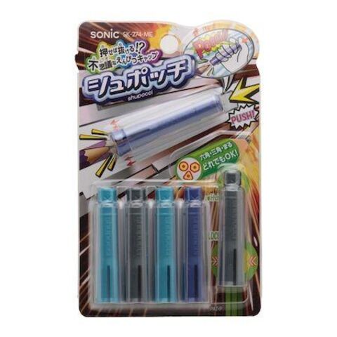 ●押せば抜ける不思議なえんぴつキャップ