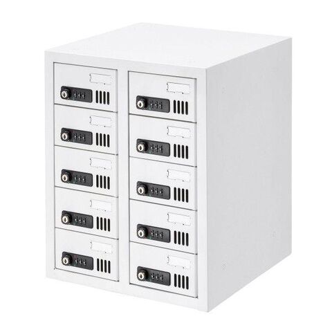 ●10台のスマートフォンを個別に管理できる保管庫です。