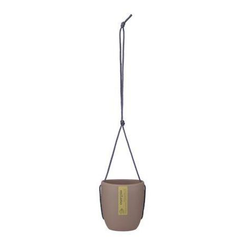 観葉植物の枝に吊るしたり、植木鉢に引っ掛けたり、空いたスペースにちょこっと置いてみたり、いろいろな所にトッピングしてお部屋の植物を楽しく飾れる、吊り紐付きの小さな鉢カバーです。