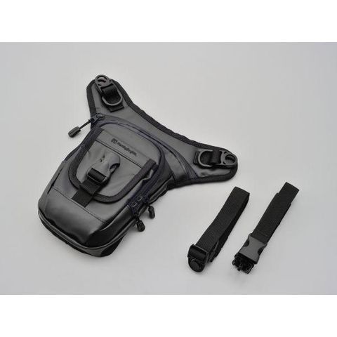 身の周りのものをすっきり身に付けられるホルスタータイプのバッグ。小物収納のほか、長財布がすっぽり入る長物収納、スマートフォンが入るフラップ収納の3室構造。素材はどんなウエアにも似合うポリエステルと水に強いターポリンの2種類。それぞれ、レッド、ブルー、イエロー、ライムグリーン、ブラック5色のファスナー色を選べます。