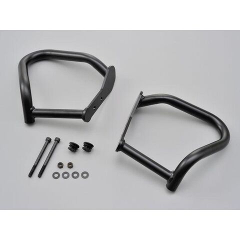 スチールパイプ製のエンジンガード。ボルトオン装着可能。立ちゴケ等の軽度な転倒に対し、エンジンやカウルのダメージを軽減。
