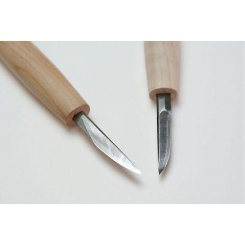 ●【諸刃ナギナタ】繰刀に近いナギナタ刃を3層鋼で製造。押し切り、引き切り両方に対応しており木目や彫る方向を気にせず彫れる。引き切りをよく使うバードカービングなどで便利。