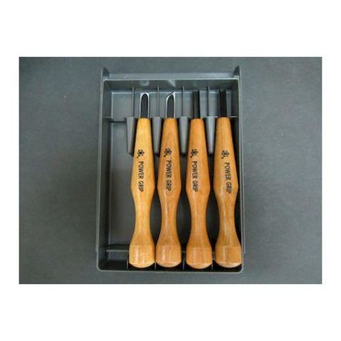 三木章刃物 80004 パワーグリップ彫刻刀 グレープラケース入 1セット4本組