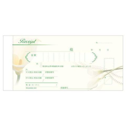 ヒサゴ #801 デザイン領収証 カラー クリーム 2P インボイス対応 2枚複写 小切手サイズ 製本伝票 軽減税率対応版