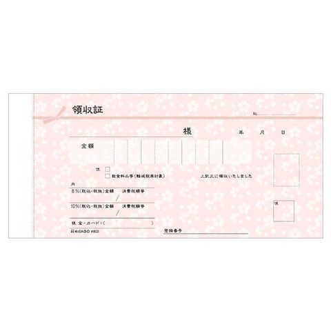 ヒサゴ #803 【5個入】 デザイン領収証 桜 薄紅 2P インボイス対応