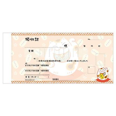 ヒサゴ #811 デザイン領収証 招き猫 オレンジ 2P インボイス対応 2枚複写 小切手サイズ 4902668579514