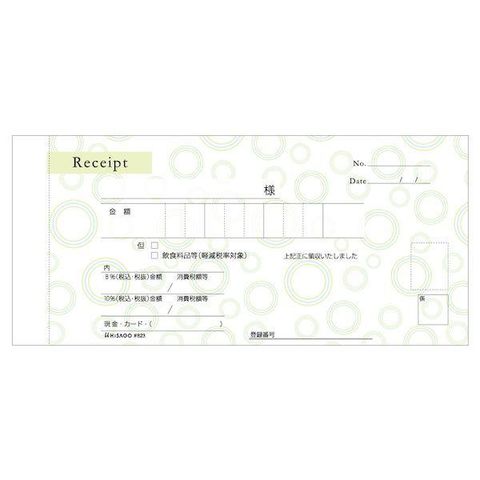 ヒサゴ #823 【5個入】 デザイン領収証 サークル グリーン 2P インボイス対応