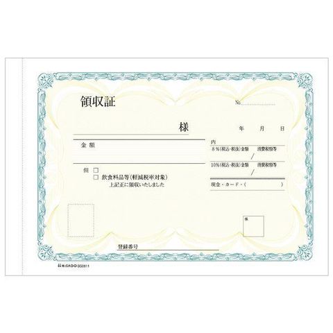 ヒサゴ BS0811 領収証 2P インボイス対応 複写式 PLY1301 2枚複写 B6ヨコ 手書き伝票 HISAGO