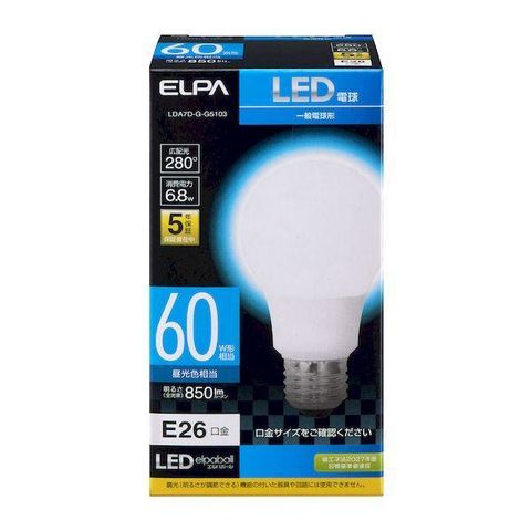 朝日電器 ELPA LDA7D-G-G5103 LED電球A形 広配光 LDA7DGG5103 60W形 A形タイプ 60W相当