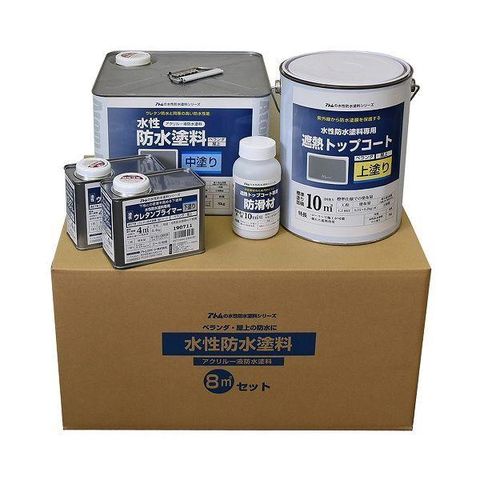 【個数:1個】アトムハウスペイント 4971544230764 水性防水塗料8m2セット ウレタン防水下地用 中塗りグレー/上塗りグレー