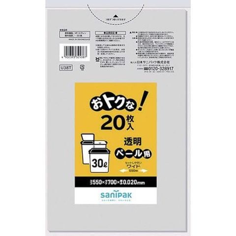 サニパック U38T おトクな!ペール用ゴミ袋 30L 透明 20枚