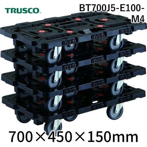 TRUSCO BT700J5-E100-M4 まとめ買い 連結式樹脂製平台車 ビートル 700X450 自在5輪 4台セット BT700J5E100M