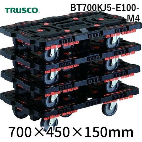 TRUSCO BT700KJ5-E100-M4 まとめ買い 連結式樹脂製平台車 ビートル 700X450 自在5輪 柵付 4台セット BT700KJ5