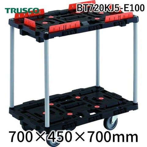 TRUSCO BT720KJ5-E100 連結式樹脂製2段台車 ビートル 700X450 自在5輪 柵付 ハンドルなし BT720KJ5E100