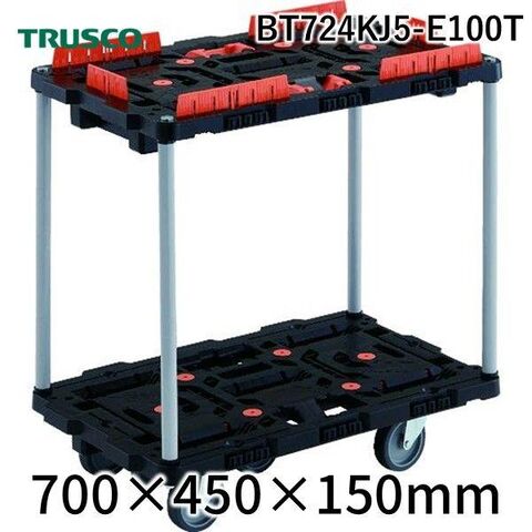 TRUSCO BT724KJ5-E100T 連結式樹脂製2段台車 ビートル 700X450 自在5輪 柵 とめたろう ハンドル付ル付 BT724KJ5