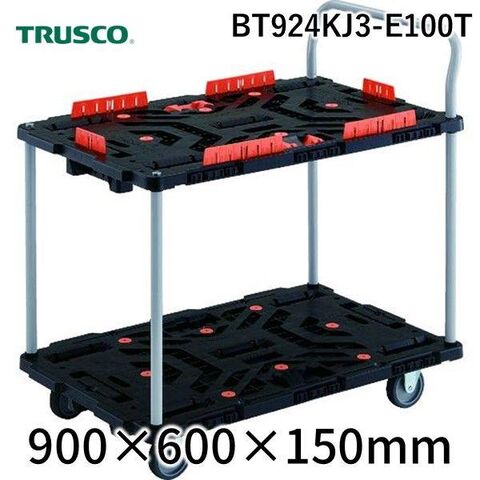 TRUSCO BT924KJ3-E100T 連結式樹脂製2段台車 ビートル 900X600 自在3輪 柵 とめたろう ハンドル付ル付 BT924KJ3