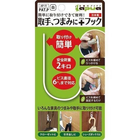 コンテック 4935772400115 AP-11 簡単に取り付けできて便利! 取手つまみに+フック ホワイト