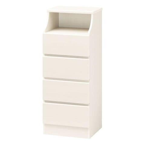 ●買い足しにちょうどいい4段チェスト。小物や衣類の整理に幅44cm、高さ約110cmの引出し収納。ホワイト 白木目。