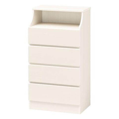 ●一人分にちょうどいい4段チェスト。小物や衣類の整理に、幅60cm、高さ約110cmの引き出し収納。ホワイト 白木目。