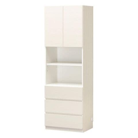●壁面収納引き出し付きキャビネット幅60cm。ポルターレ(POR)シリーズの商品との組み合わせで大型壁面収納になります。ホワイト 白木目。