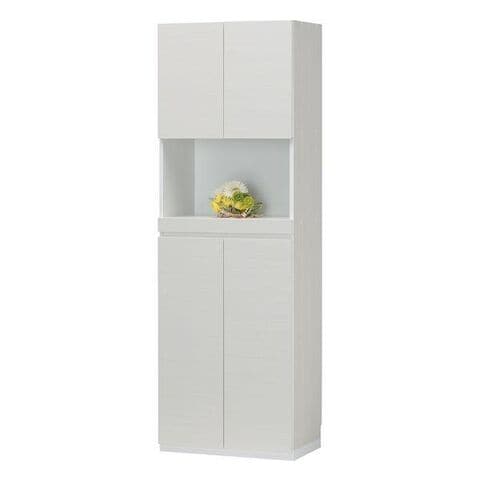 ●大型玄関収納 幅60cmの飾り棚付き下駄箱・シューズラック。ポルターレエントランスシリーズの組み合わせで、玄関をリフォームしたかのような大型エントランス収納にできます。ホワイト 白木目。