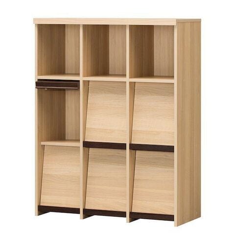 ●本・雑誌をディスプレイできるフラップ扉の本棚。3段ナチュラルブラウン。