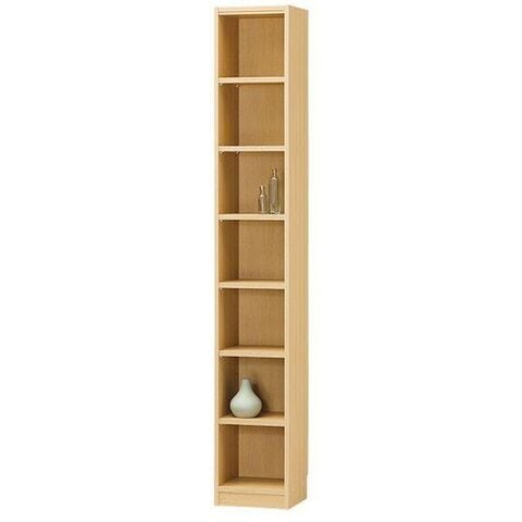 ●隙間ラック、整理棚、本棚。ちょっとしたスキマに幅31cmのスリムなシェルフ。高さ198cm。ナチュラルブラウン。