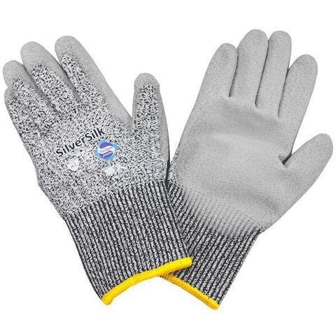 天寿刃物本舗 #267_LL あんたが職人 耐切創PU背抜き手袋 シルバーシルク LL