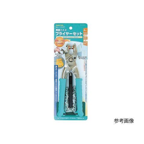 ●セット内容:両面ハトメプライヤー、両面ハトメ玉、下穴ポンチ、下敷き