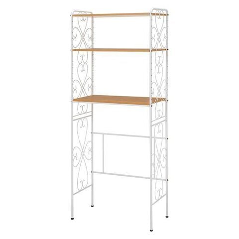 ●アイアンの曲線がエレガントで、洗濯機の上を有効活用できる洗濯機ラック。