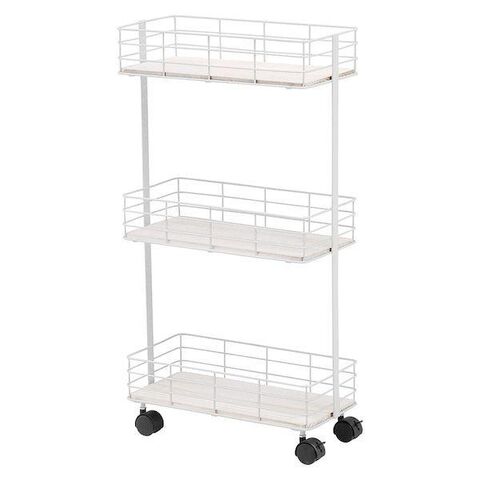 ●木材と細めのアイアンを組み合わせたキャスター付きラック。